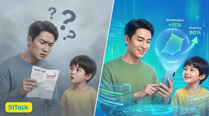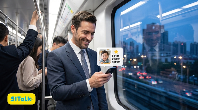 • The 51Talk Fix: He checks the App Dashboard on his commute home. He sees his son got 5 stars and learned 4 new words about “Planets.”